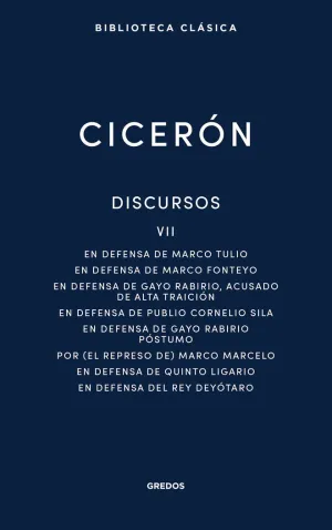 Siguiendo con una labor única en castellano en lo que respecta a la obra oratoria de Marco Tulio Cicerón, Gredos ofrece aquí el volumen VII de sus discursos. Se trata de un corpus excepcional tanto para entender el pensamiento romano, como para examinar las técnicas retóricas de Cicerón, admirar la depuración de su lenguaje y adentrarse en lo que supuso el derecho romano, tanto parta su época como para períodos posteriores. Este tomo engloba textos de los años 72-53 a. C. en los que el trasfondo político adquiere un peso específico fundamental, y en los que el autor reflexiona sobre los abusos de poder, la importancia de la argumentación bien estructurada y la ética en política. Es decir, temas tan universales como vigentes hoy en día.