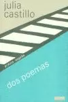 La extrañeza constituye el rasgo principal de Dos poemas, un texto cuya fuerza reside en su despojamiento y cuya radicalidad introduce una nota insólita en el panorama de la poesía española contemporánea. Julia Castillo descarta toda descripción de sentimientos ya conocidos en favor de una interiorización del fenómeno poético. En esta aventura, el poeta, como ella misma advierte, «no aspira a escribir lo que siente, sino a sentir lo que escribe»; no le teme al caos, sino a la simplificación; no intenta rescatar la forma, sino que sea ésta la que conduzca el proyecto creativo. La obra de Julia Castillo (Madrid, 1956) incluye ocho entregas, desde la temprana Urgencias de un río interior (Premio Adonais 1974), hasta Palimpsesto (1999), primero de los libros compuestos durante su larga estancia en Oriente Medio.