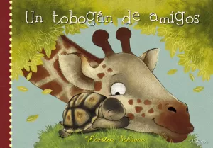 La jirafa la sube al árbol más alto. Luego, junto con la cebra, el oso, el flamenco, el cocodrilo, la serpiente y muchos animales más se agarran hasta formar un compacto tobogán. Le piden ayuda al niño lector para que dé vuelta el libro hacia un lado y hacia el otro y así, entre todos, le dan un empujoncito a la tortuga que se desliza y sale disparada y feliz.